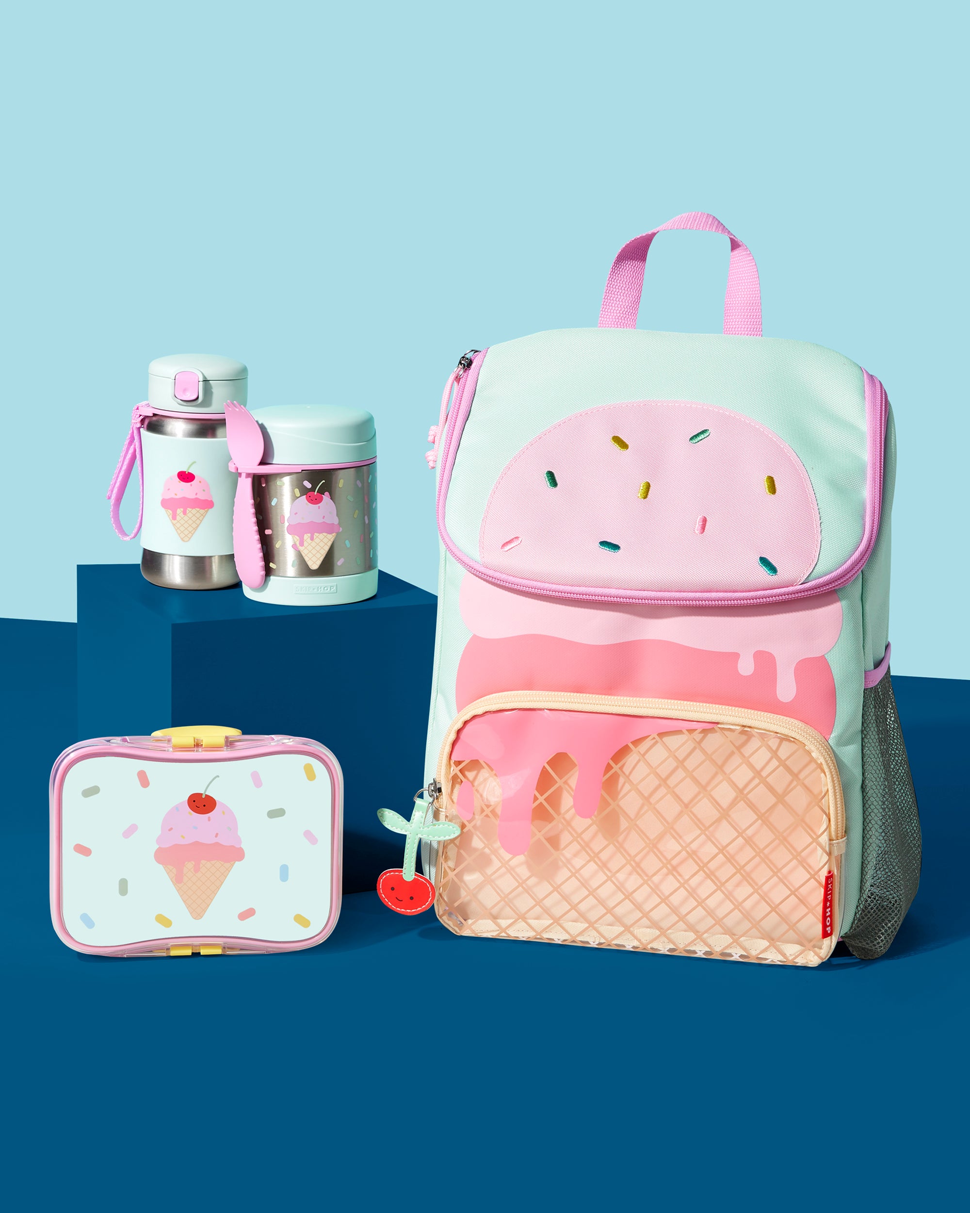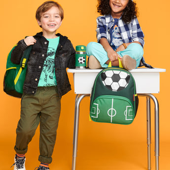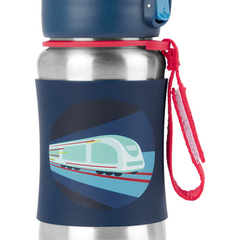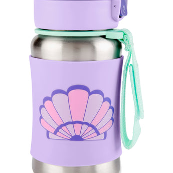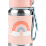 Keep kids hydrated with the Skip Hop stainless steel water bottle! Features a no-slip silicone sleeve to protect little hands from cold surfaces, signature Zoo characters, a handy grab-me strap and pop-up lid to keep the flexible straw clean. Perfect for school and on-the-go.