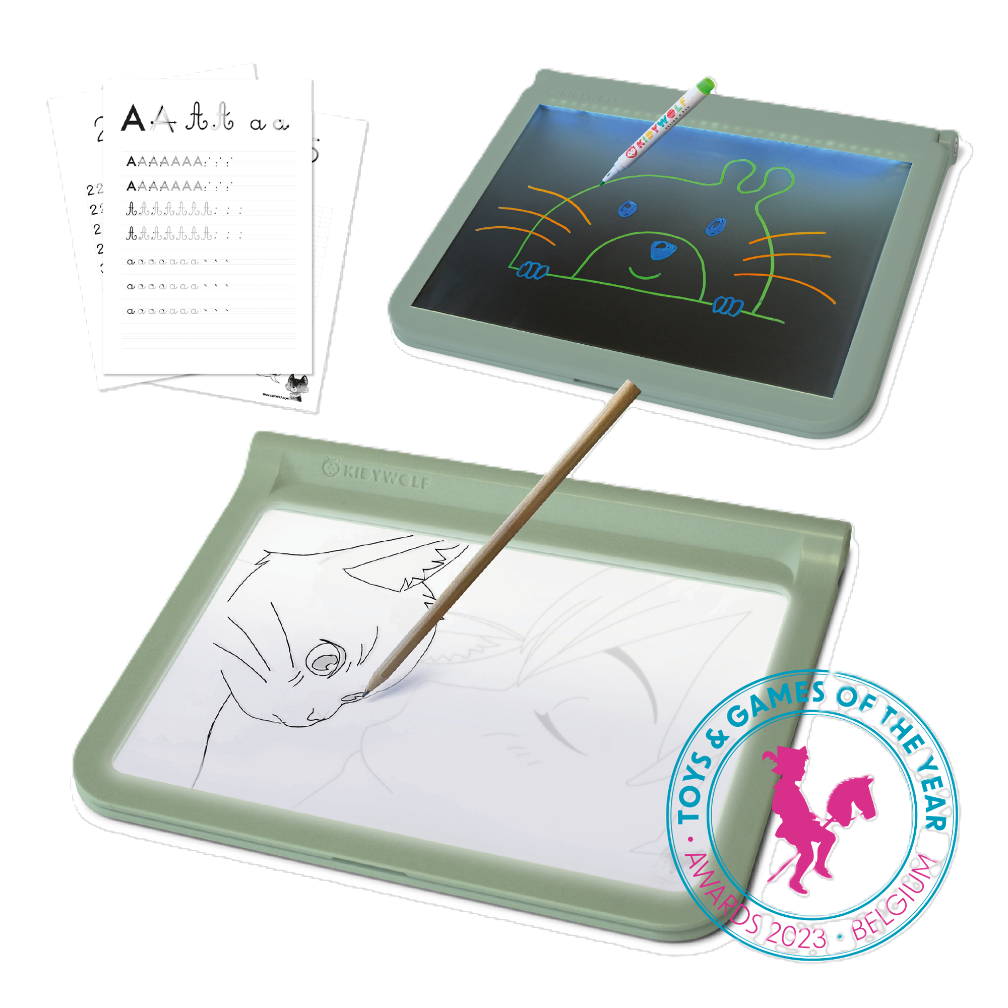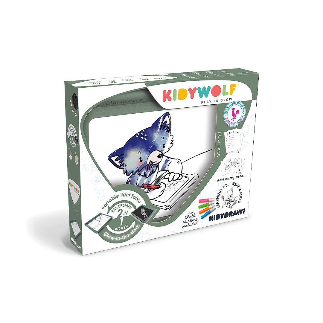 Unleash your child's inner artist with the KIDYWOLF Kidydraw Pro Light Tablet! KIDYWOLF engineered this portable double-sided light tablet to help kids develop drawing and writing skills away from screens. Featuring a rechargeable LED tracing board on one side and an illuminated blackboard on the other, this KIDYWOLF tablet offers endless creative possibilities and night-time fun. A perfect gift for budding artists who love to draw, trace, and create.