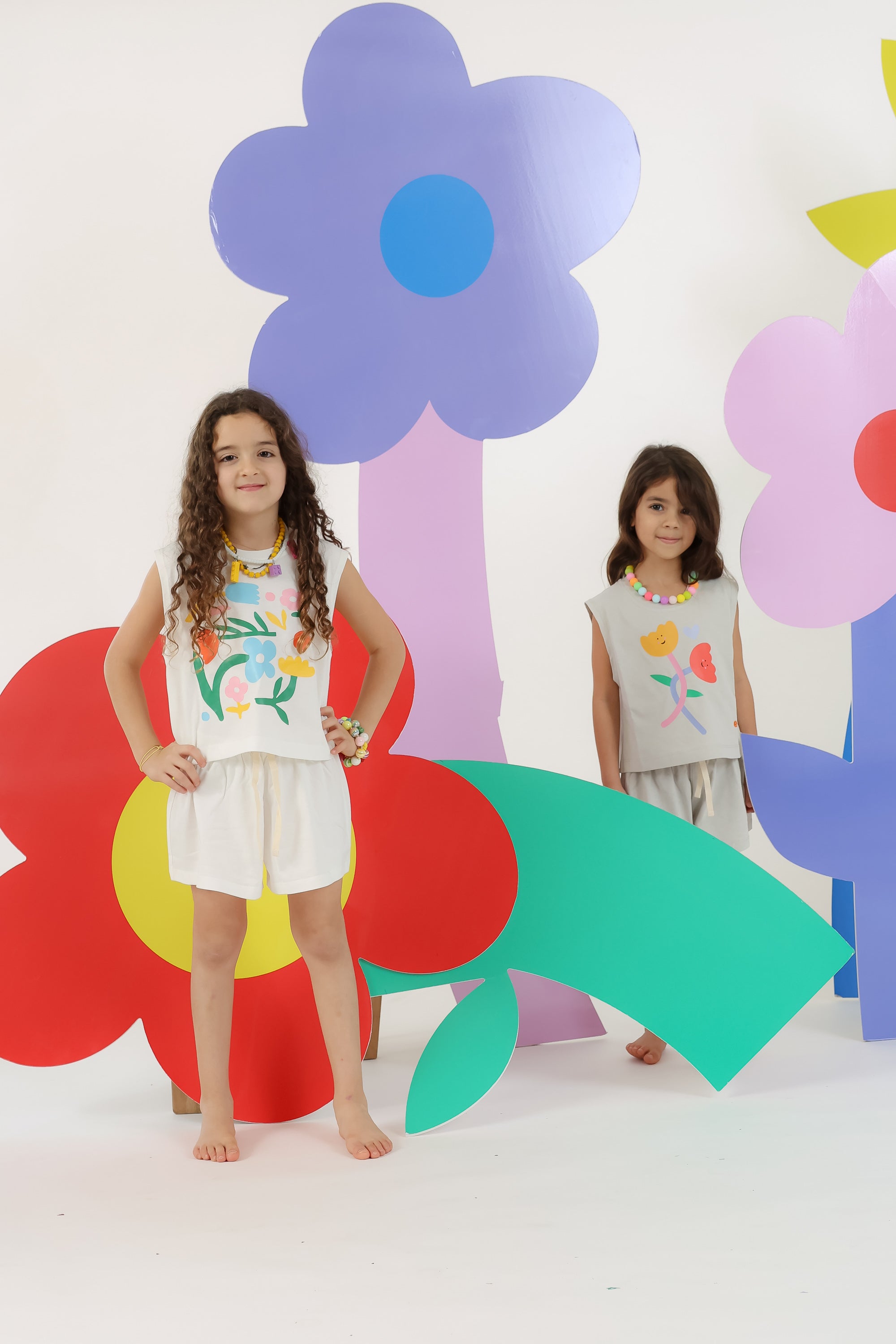 White Flowers Girls Shorts and T-shirt Set