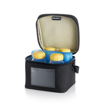 This stylish, essential cooler for transporting expressed milk is a mom-favorite. Convenient to cool, store and transport breastmilk, this stylish bag is designed for active and working mothers. The insulation on the inside of the bag and contoured ice pack designed for Medela bottles maximises breast milk storage time. Ice packs safely store fresh breast milk for up to 12 hours.