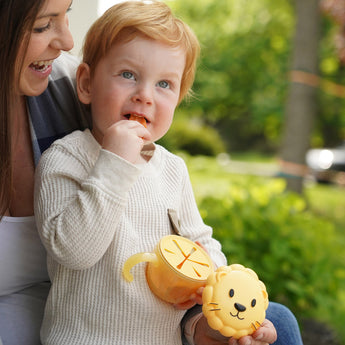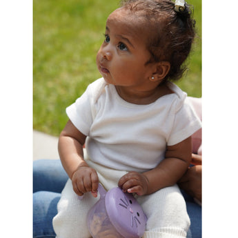 Perfect snack container for babies and toddlers learning to snack on their own. Soft, flexible finger trap helps prevent spills, making snacking fun and easy at home or on the go. Clear sides let parents see contents quickly. Safe, durable, and kid-friendly.