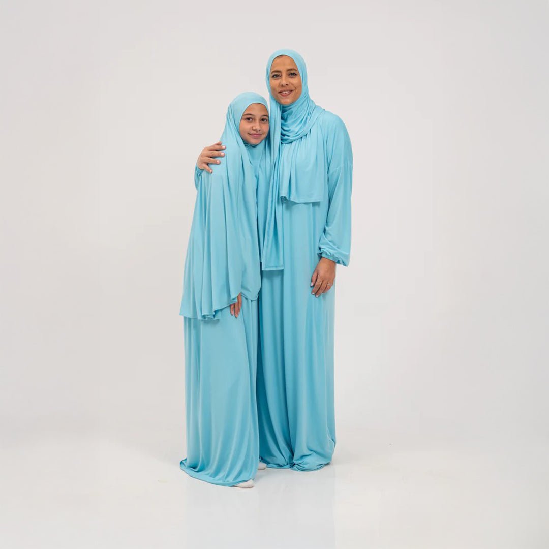 Discover the Girls Isdal Plain Prayer Set - Ages 2-13 by Rouqei. Make prayer time special with our Girls' Isdal Plain Prayer Set, crafted for comfort and style. Designed for ages 2 to 13, this set features a soft, flowing skirt and matching veil made from high-quality jersey stretch fabric, ensuring ease of movement. With vibrant designs and mother-daughter matching options, these sets inspire confidence and joy, turning prayer into a cherished experience.