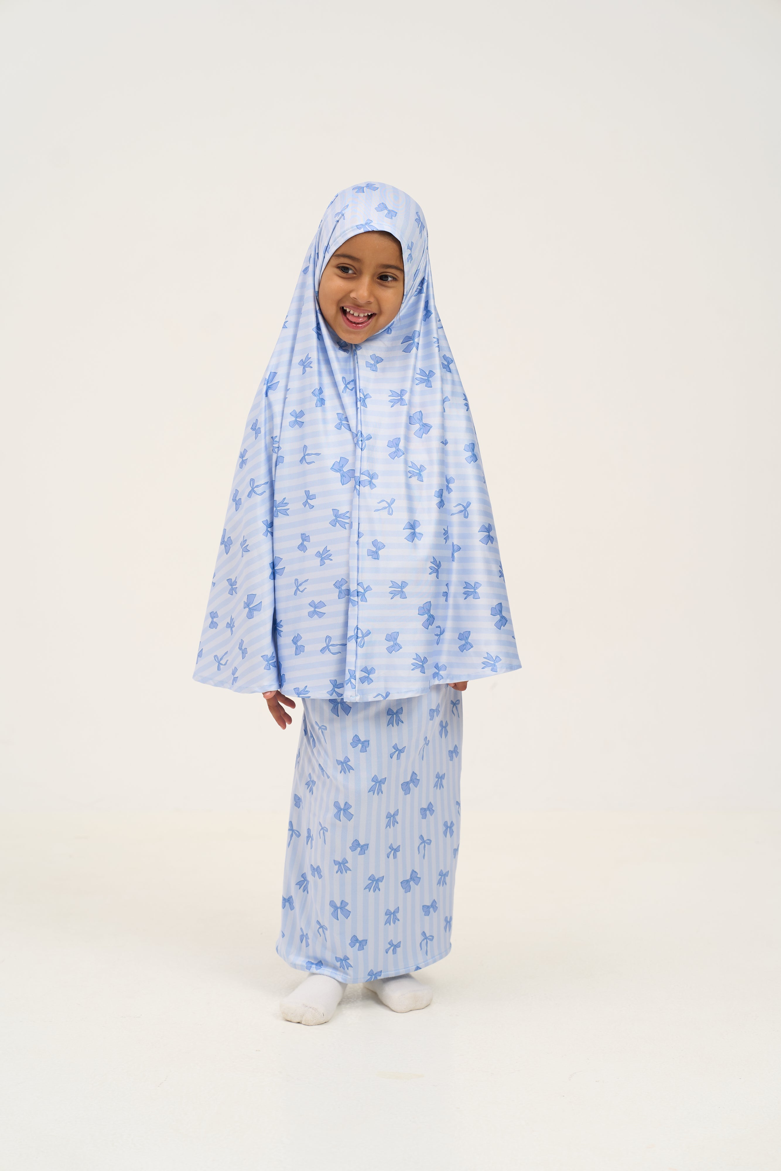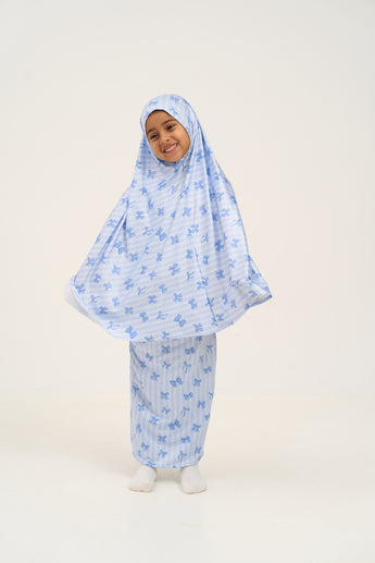 Rouqei Girls Prayer Set Blue Bow | Islamic Kids Wear