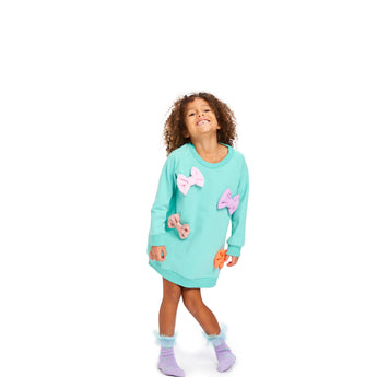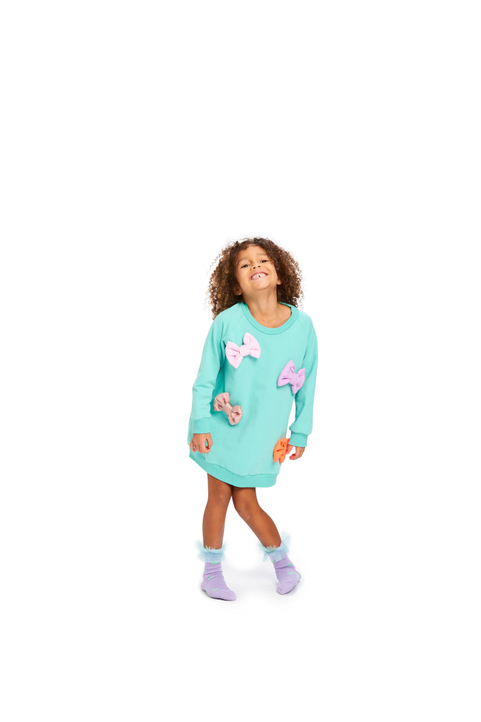 Our Sweet Simone dress - now in a beautiful mint green color. The dress has big wrapped candies on the front, which makes it something special to wear at any occasion. Dress it up for that special party/family dinner or dress it down for an everyday cool and fun look. We love it both ways.