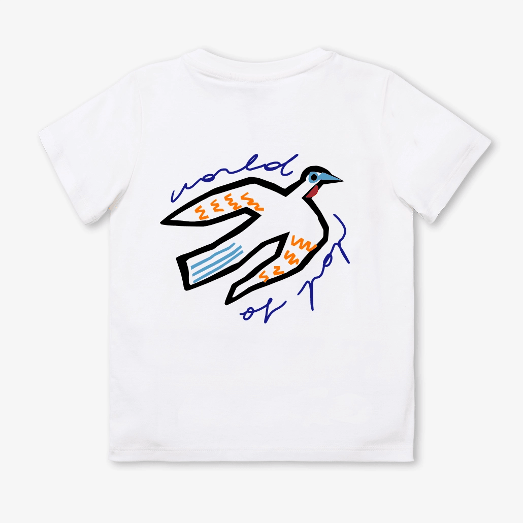 World Of Pop White Birds Protect Kids T Shirt | Organic Cotton Nature Print