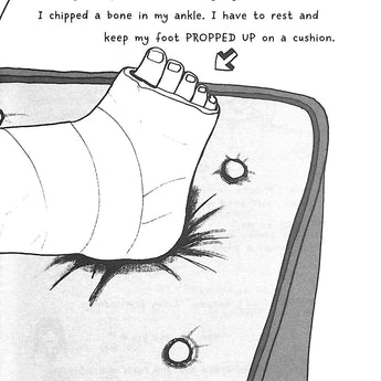 Doodling on his plaster cast helps to pass the time, along with visits from family (with treats), friends and even Rooster managing to sneak in.