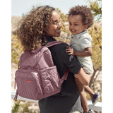 Our lightweight, quilted backpack offers hands-free convenience and special packing cubes for baby's essentials. The spacious interior has room to tote everything from snacks to spare outfits and the extra wide opening makes it easy to find essentials in a pinch. The front compartment includes 2 multi-purpose packing cubes and allows for extra storage. Everything stays in reach with elasticized interior pockets and insulated side bottle pockets. The changing pad pocket performs double-duty, acting as a laptop holder when traveling. With the Forma backpack, function meets fashion to take you from birth to toddlerhood and beyond in style.