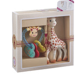 - This set features a heart rattle with textured medallions to relieve baby's gums and Sophie the girafe
