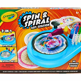 Introducing the Spin & Spiral Art Station, a unique and delightful arts and crafts kit for kids. This kit is a whirlwind of creativity, allowing kids to craft stencil images, spiral shapes, and drippy ink designs using the 3-in-1 Super Gear. With no batteries required, it’s kid-powered and easy to use. The set includes 20 Paper Discs, 2 Gears, 6 Washable Pip-Squeaks Skinnies Markers, and 3 Ink Bottles. Keep the fun spinning with paper plate disc refills and Crayola Washable Paint as an ink refill option. Safe, non-toxic, and endlessly entertaining, this art station is a perfect gift for creative minds ages 6 and up. Let the spirals spin and the creativity flow