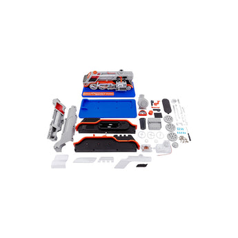 Construct a model steam train with motion, sound, LED lights and LED flashes. Real steam vapour will come out while the motorturns the wheel to move. Producing a train-like whistle. Lamp tube becomes bright and atomizer sprays gradually.