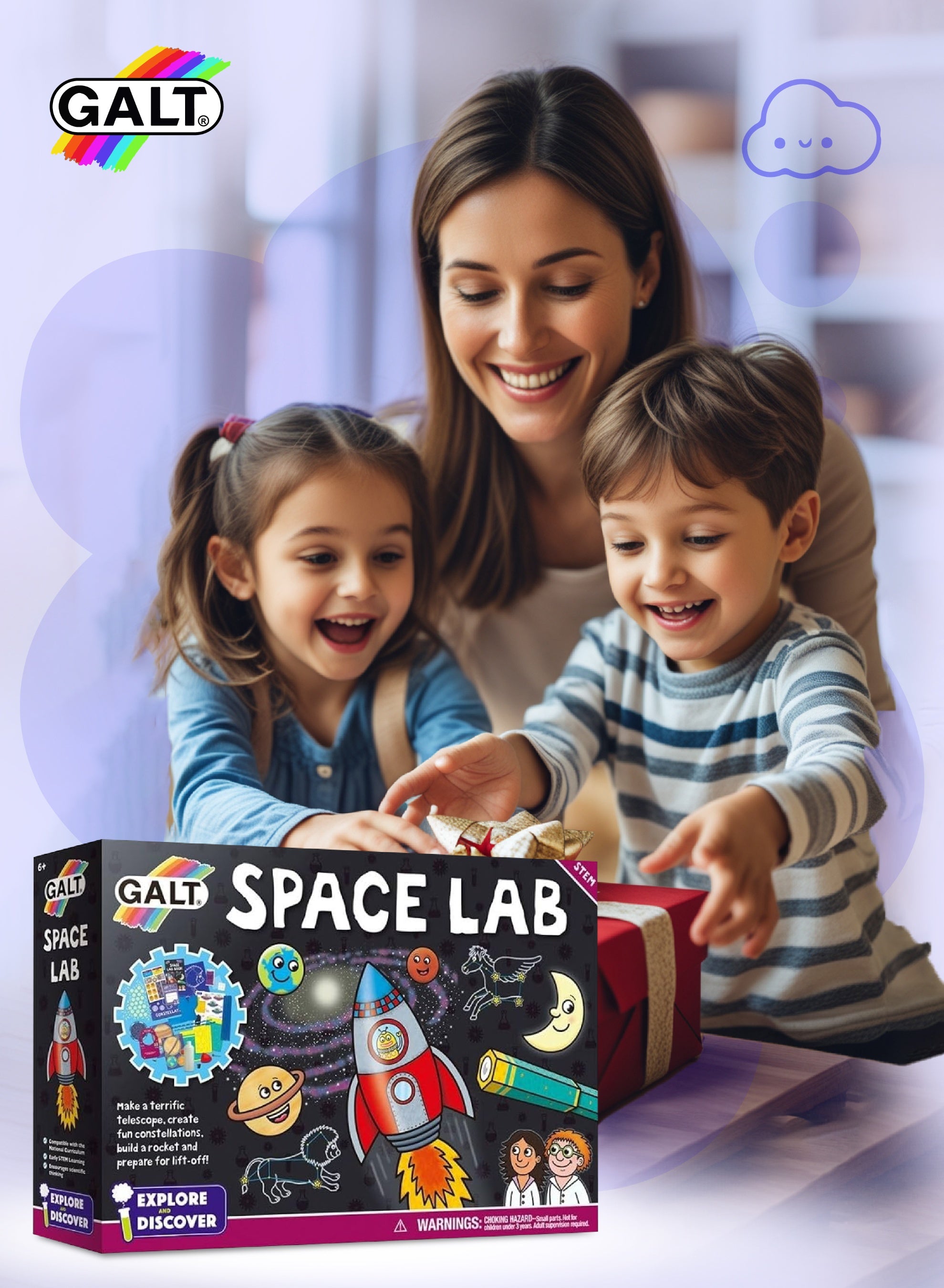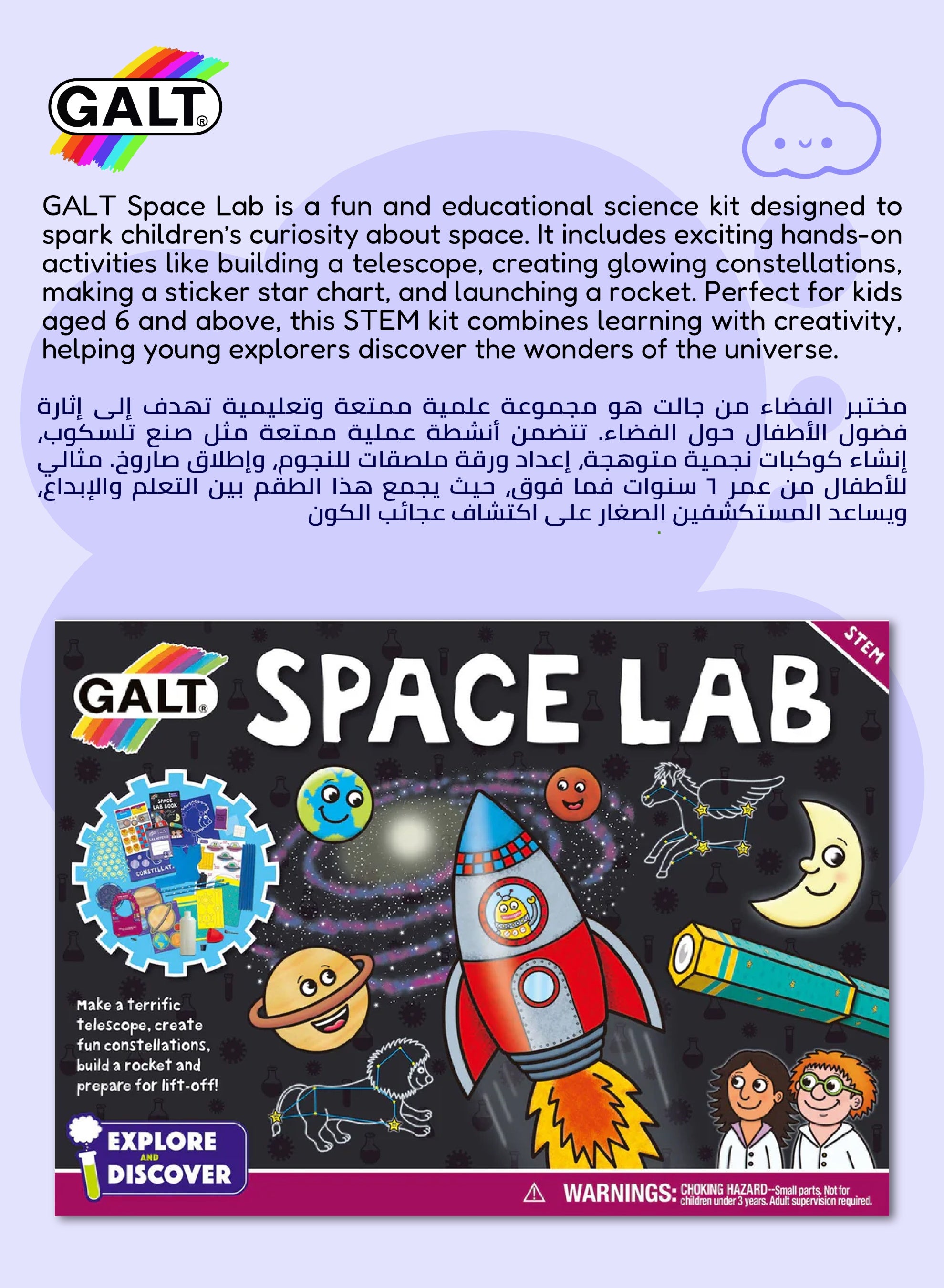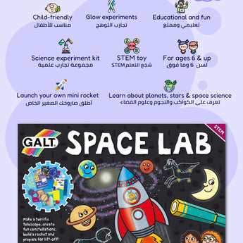 Ignite your child’s passion for STEM with the Space Lab Science Kit. Build glowing constellation models, launch a rocket, and create your own solar system right at home.