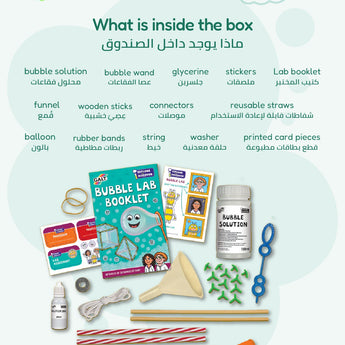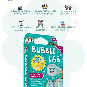 🔬 Fun Bubble Science: The STEM Bubble Lab Kit is perfect for kids 5+ | Packed with 7 exciting bubble experiments, this kit lets children create mega bubbles and 3D shapes.