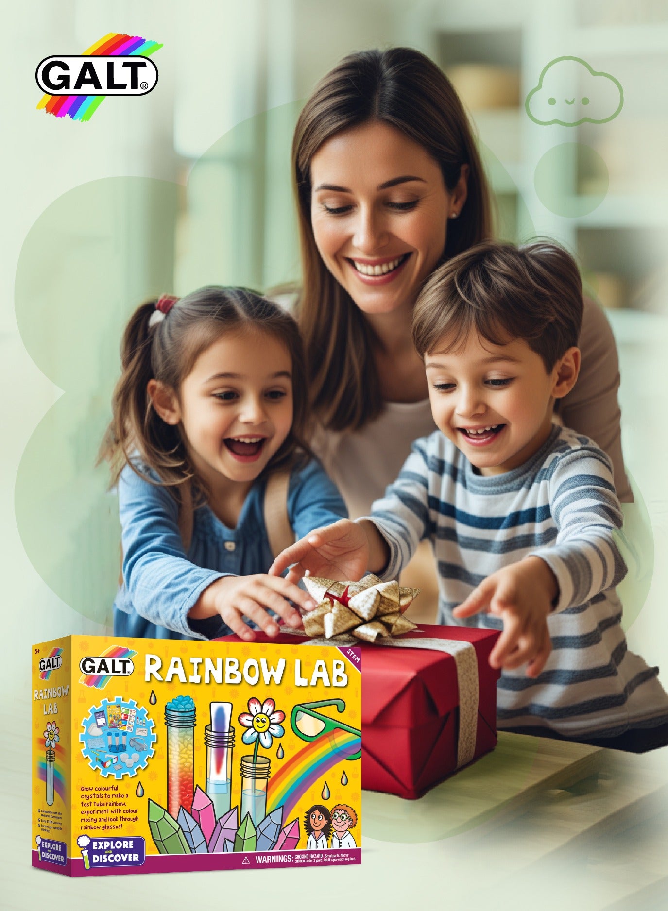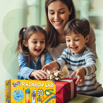 With 12 incredible activities, kids can mix vibrant colors, grow dazzling jelly-like crystals, and build their very own test tube rainbow. The kit includes real lab tools, food coloring, rainbow glasses, and a notepad to record discoveries.