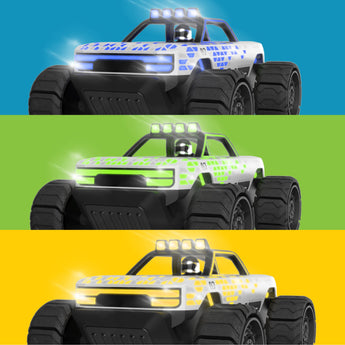 Introducing the Sharper Image Phantom Crawler RC Light-Up Truck, designed to dominate any terrain with its innovative expanding tires. These oversized tires adjust to provide superior traction and stability, making every adventure possible. Stand out on the track with colour-changing lights that let you choose between 3 vibrant colours to illuminate your path. Equipped with a 7.4V 1300mAh USB-C rechargeable battery, the Phantom Crawler offers up to 20 minutes of continuous play on a single charge. Constructed from durable A.B.S. and metal alloy materials, this RC truck is designed to withstand the rough and tumble of off-road racing. Its robust body frame ensures long-lasting performance and durability. With a 2.4 GHz remote control, you can command the Phantom Crawler from up to 100 feet away. Perfect for kids aged 6 and up, the Phantom Crawler promises endless excitement and fun.