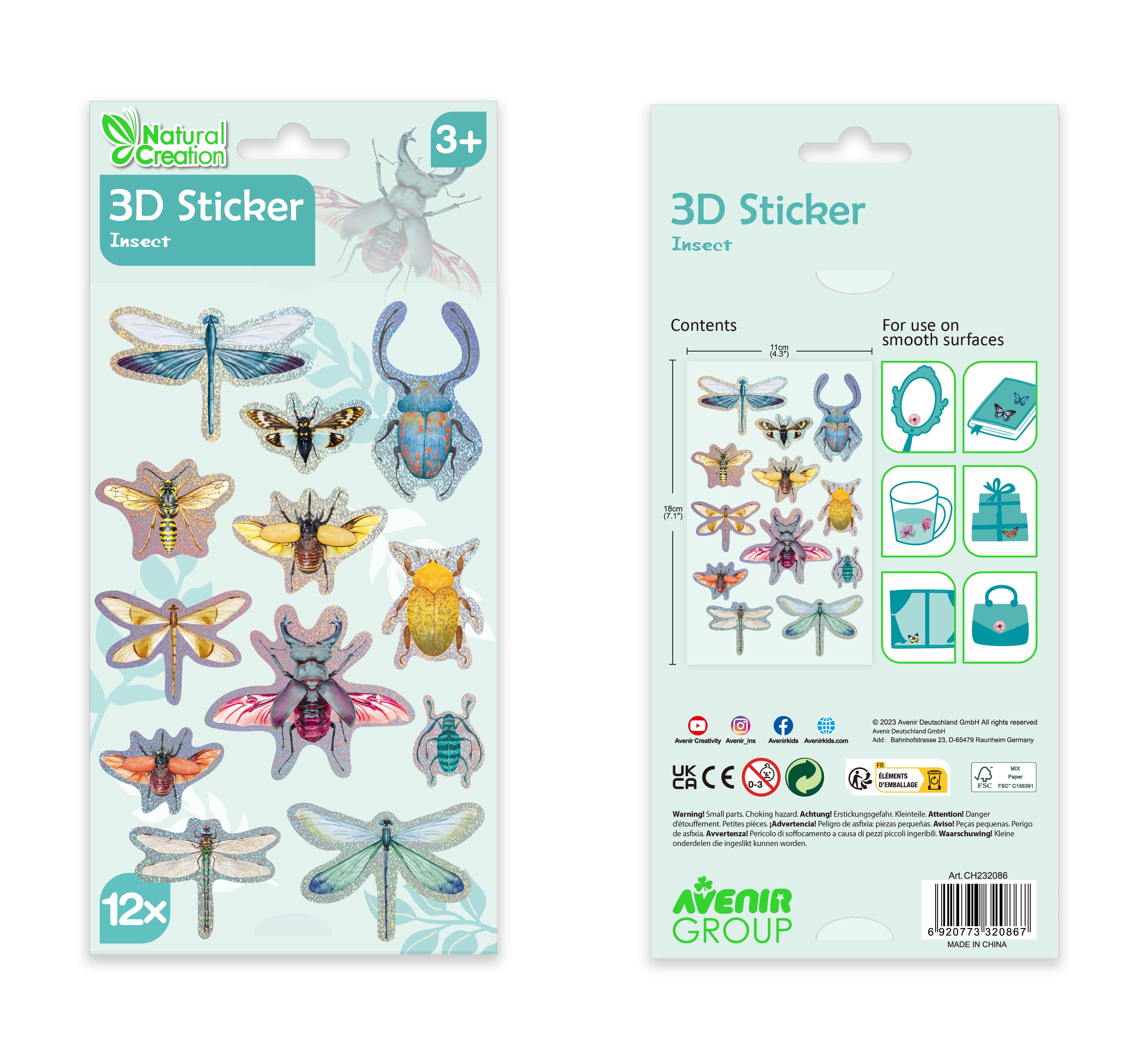 Transform your crafts with Avenir 3D Stickers - 10 Pack. Featuring vibrant butterflies, lively insects, and blossoming flowers, these stickers add depth and charm to any project. Perfect for scrapbooking, card making, and more, they offer endless creative possibilities. Made with high-quality materials for durability and easy application, these stickers are ideal for both children and adults looking to add a splash of nature-inspired whimsy to their creations.