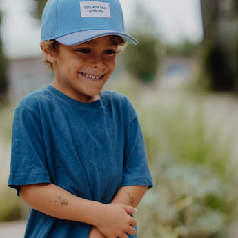 Everyone loves our Mini Dive Cap for children and babies. This children's unisex cap also comes in a dad size. Perfect for making zany matchy-matchy looks with the kids! 100% organic cotton, with a curved brim.