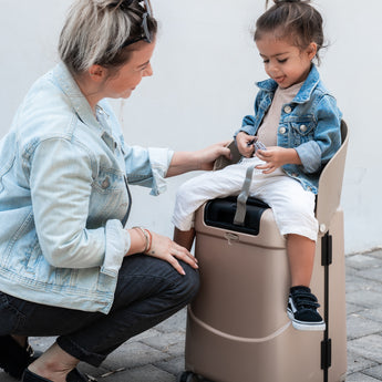 Designed for multi-function travel, the MiaMily luggage bag universally configures into a ride on suitcase for children or a portable seat for adults, allowing your child to quickly and conveniently travel with you on top of the travel suitcase or providing a resting place for adults when standing for long periods of time.
