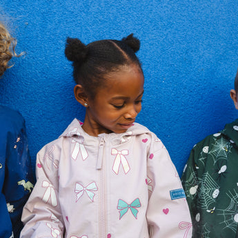 A playful raincoat for kids that changes appearance in different light, ideal for toddlers and young children. Lightweight, waterproof, and easy to pull on, it keeps little ones dry, visible and safe while adding rainy-day fun.