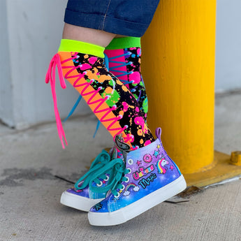 Make a SPLASH with MADMIA Colour Run Socks! These vibrant socks feature real neon shoelaces and a unique paint splatter design, perfect for adding a pop of color to any outfit. Designed for those who love to stand out, these socks are crafted with high-quality materials for comfort and durability. Whether you're running a marathon or just running errands, MADMIA Colour Run Socks will brighten your day and your wardrobe.