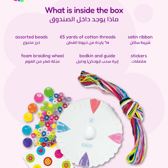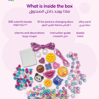 Sparkly jewellery and friendship bracelet craft kit for kids. Perfect for ages 5+ to create fun, colorful accessories at home or on playdates. Safe, easy-to-use beads, cords, and stickers boost creativity, fine motor skills, and confidence.
