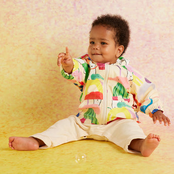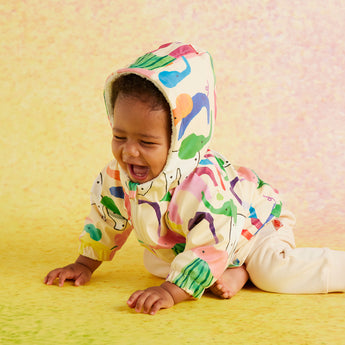Dance in the rain! Embrace the wet weather with this cosy and colourful hooded raincoat for babies and kids!