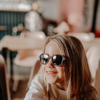 The Hossy children's sunglasses will suit all the scoundrels. The Hossy collection is a collection that we particularly like. It is carried by our Jimmy. UV400 protection, Category 3 lenses, recycled polycarbonate, spring hinges, colorful packaging, we have taken care of every detail.