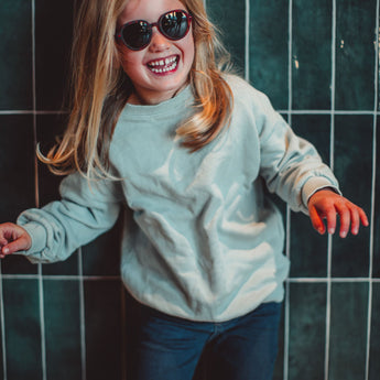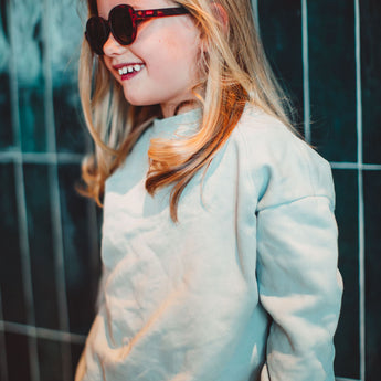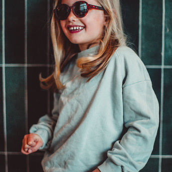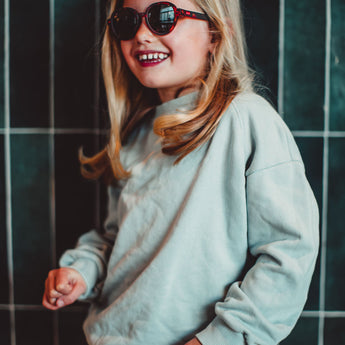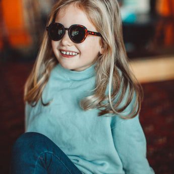 The Megy's collection children's sunglasses are a best-selling model. Not to miss. Round shape, trendy color, modern, stylish look, these sunglasses are made from recycled polycarbonate. Stylish sunglasses for children, just the way we like them. Ideal protection: UV400, Category 3 lenses, spring hinges.