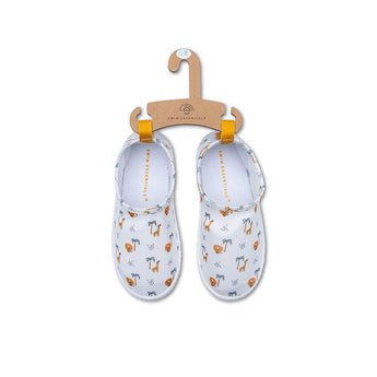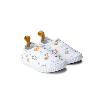 Discover the Water Shoes Jungle Lycra, the perfect companion for your child's aquatic adventures. Designed to protect little feet from rocky surfaces and hot sand, these quick-drying shoes offer a secure fit with their non-slip sole and comfort foam interior. Easy to slip on and available in various sizes, they pair perfectly with any swimwear. Ensure your child's safety and style with these durable, high-quality water shoes.