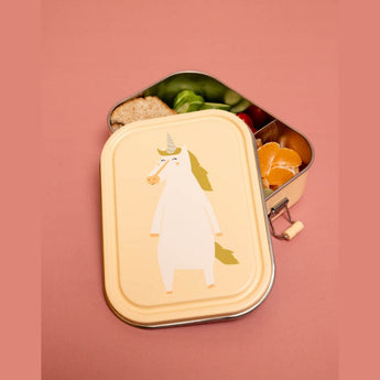 Kids can operate this lunch box by themselves, since the buckles are easy to open and close. The large lunch box has a fixed divider, so your little one can enjoy a healthy snack on the side. This durable lunch box is made entirely of stainless steel. This sturdy material does not contain any harmful chemicals and is LFGB proof. Stainless steel is the ideal material for food storage as it does not absorb any colour, flavour or odour.