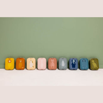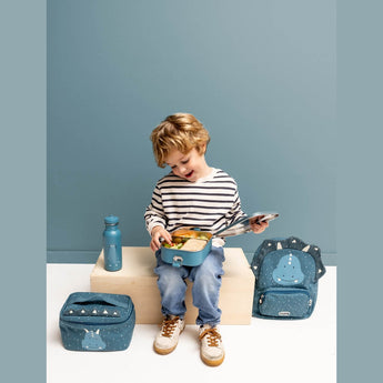 This durable lunch box nicely matches our range of backpacks and bottles. It comes in the same range of beautiful colours and features our fun animal friends on the lid.