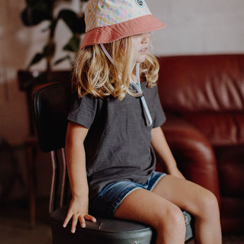 The Pinky Square Bucket Hat for children and babies is bright and sparkling. We love its colorful, original look that brings out the personality of your little rascals ;). Eco-friendly and Oeko-Tex certified. The perfect gift for the summer!