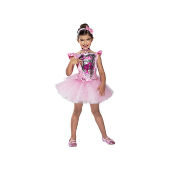 Transform your child into a graceful ballerina with the Rubies' Mattel Barbie Ballerina Child Costume. This official Barbie product features a stunning pink tutu dress with a sequin bodice and a unique reverse pattern. Complete with a matching headpiece, this costume is perfect for any aspiring dancer. Let your child twirl in style and experience the magic of Barbie.