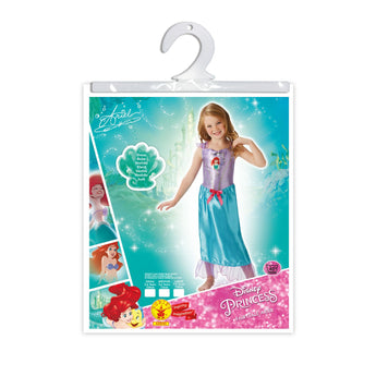 Dive into a world of magic with Rubies' Official Disney Princess Fairy tale Ariel Costume for Girls. This enchanting ensemble, in shades of lavender and aquamarine, captures the shimmering beauty of the sea. Perfect for little mermaids ready to explore both land and sea, this costume promises a fairytale adventure.