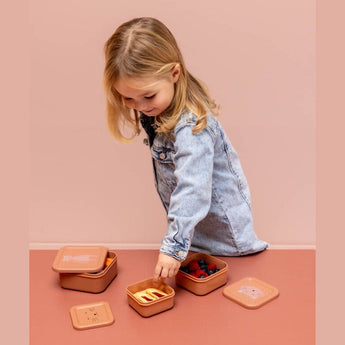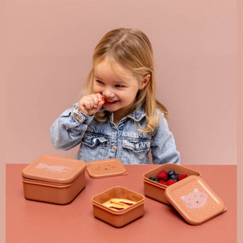 Share snacks of every size with your favourite animal friend. This set of three nesting snack boxes fit together perfectly for storage and their leakproof lids are easy for little hands to open. Perfect for school, home and on-the-go snacking. Dishwasher-safe, with a PP box and PE lid.