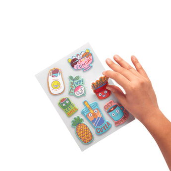 It’s a sticker smorgasbord with the Quirky Fun Sticker Stash set. Over 200 styles of cuteness including vinyl stickers, cute puffy stickers and pages of adorable paper stickers, plus a handy sticker keeper. The Quirky Fun Sticker Stash set features sweets to eat stickers, happy rainbow stickers and yummy fast food stickers and more off the wall colourful fun for decorating.