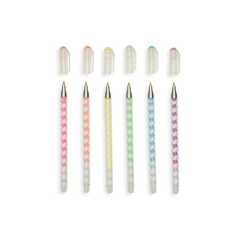 Experience the joy of writing with Totally Taffy Scented Gel Pens. Each pen offers a smooth, vibrant pastel color with a delightful candy scent. Perfect for adding a sweet touch to your notes, drawings, or creative projects. This set of six includes unique scents like Orange, Lemon, Grape, Strawberry, Apple, and Cherry, making every stroke a sensory delight.