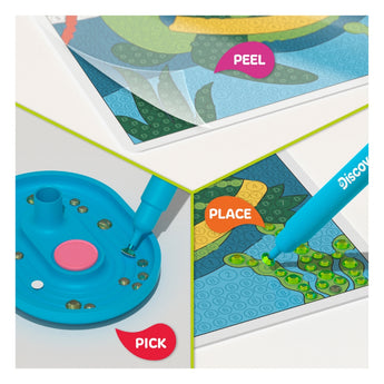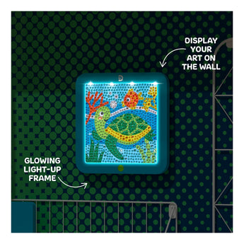 Create, light up, and display with the Discovery™ Dazzle Art Light-Up Diamond Painting Kit. This comprehensive craft kit lets you dive into the world of diamond art, featuring over 800 gems and a special adhesive art sheet to diamond paint a vibrant sea turtle. Illuminate your finished piece with the built-in LED lights, and then display it using the handy gem pen kickstand or mount it on your wall. Perfect for both beginners and seasoned crafters, this kit provides all the tools needed for a stunning, glowing artwork that brings a sparkle to any room.