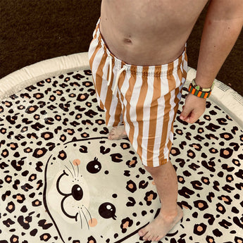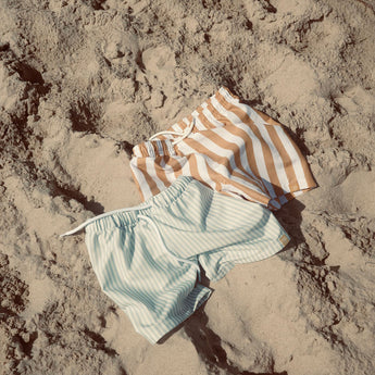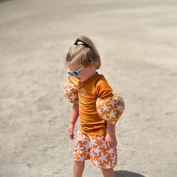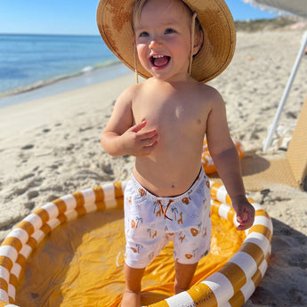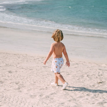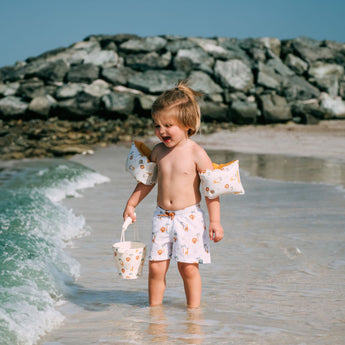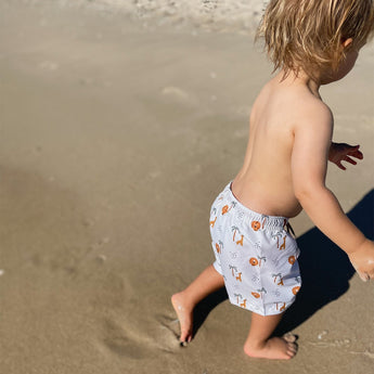 Dive into style and safety with our Trendy & UV-Protected Boy Swim Shorts. Designed with bold prints and a comfortable mesh lining, these shorts offer UPF 50 protection and an adjustable waistband for a secure fit. Perfect for any water adventure, they are durable, vibrant, and pair effortlessly with matching rash guards. Ensure your child enjoys endless summer fun with fashion-forward swimwear that prioritizes comfort and protection.