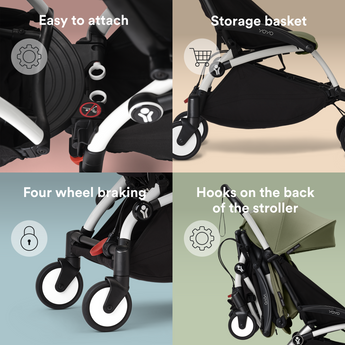 Whether your children have a small age gap or are twins, the stroller come in a single click, YOYO² turns into a double stroller with YOYO connect, a unique accessory that hooks onto the back of your stroller.