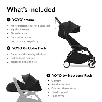 Stokke YOYO3 Black frame with 0+ & 6+ Pack Bundle Award-Winning Compact Baby Stroller