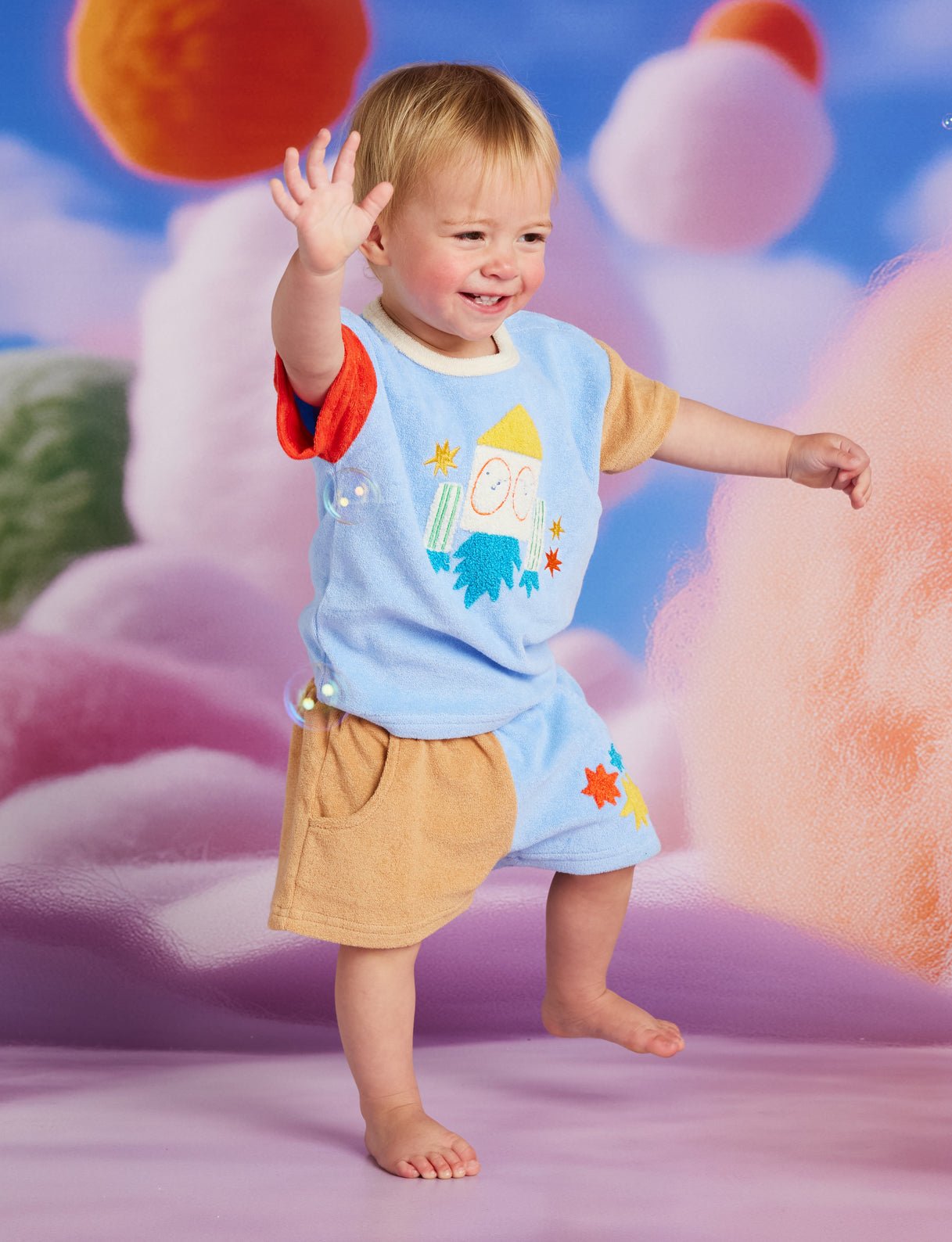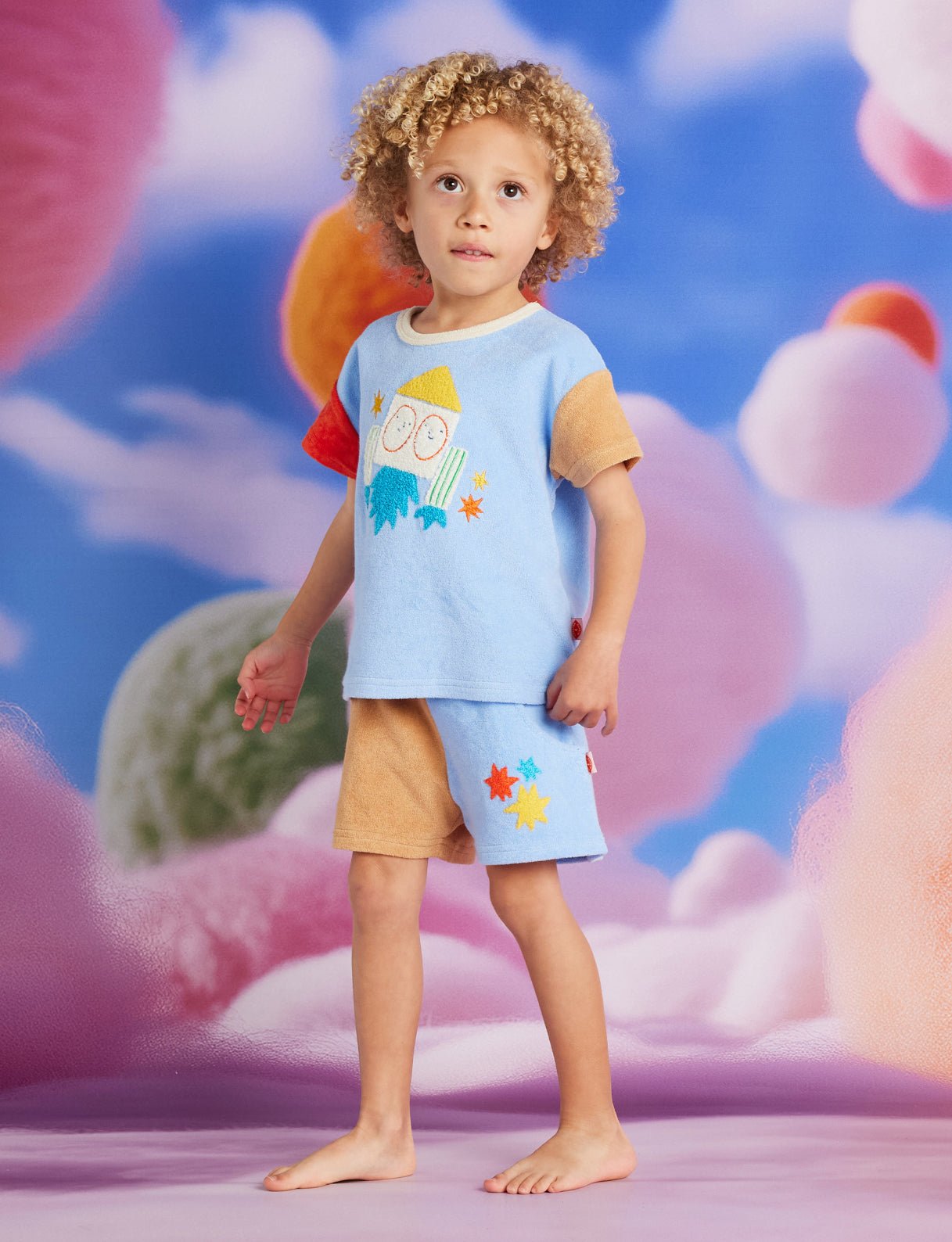 Blast off in comfort! The See You In Space Boys Terry T Shirt and Shorts Set by Halcyon Nights features soft terry fabric with an exciting space print. Halcyon Nights designed this cosy outfit for boys who love rockets and cosmic adventures. This Halcyon Nights set is perfect for relaxed summer days and holidays.