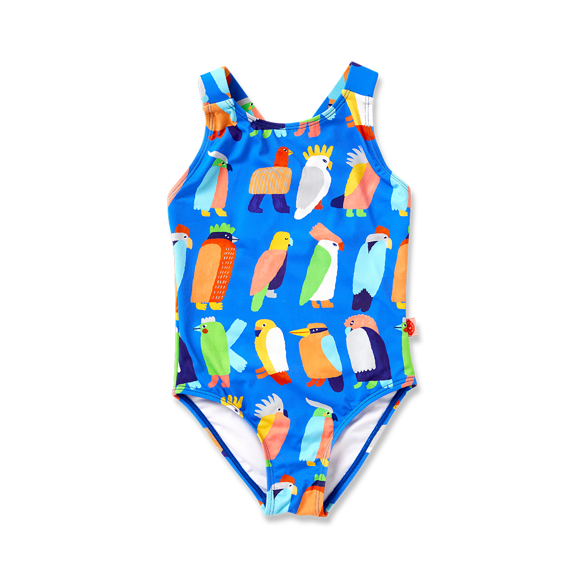 Girls Strap Bather Flamin Galahs Swimsuit | Kids Swimwear