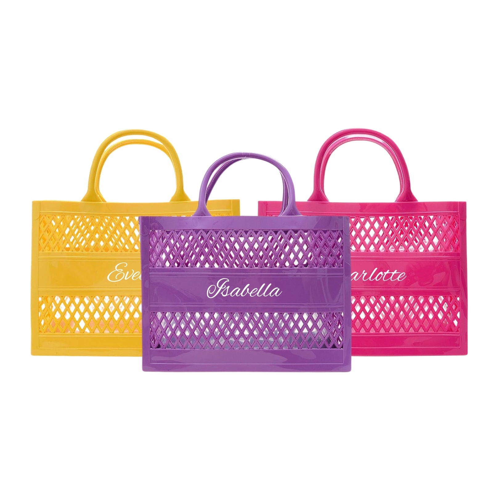 Discover the Personalized Kids Beach Bag by My Little Thieves. Elevate your beach experience with our Personalized Jelly Beach Bag. Crafted for durability and style, this bag features a custom name for a personal touch. Available in a spectrum of vibrant colors, it's designed to carry all your summer essentials with ease. Perfect for beach outings and poolside relaxation, this bag is a must-have for those who love to stand out.