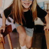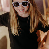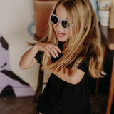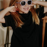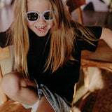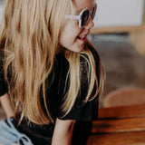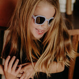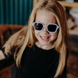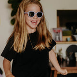 The Hossy children's sunglasses will suit all the scoundrels. The Hossy collection is a collection that we particularly like. It is carried by our Jimmy. UV400 protection, Category 3 lenses, recycled polycarbonate, spring hinges, colorful packaging, we have taken care of every detail.