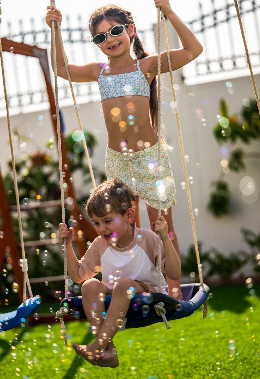 Swim shorts/trunks for girls who love matching their bikini—ideal for parents and caregivers shopping swimwear. Featuring UPF50+ UV protection to help keep sun safety in mind while they splash at the pool or beach.