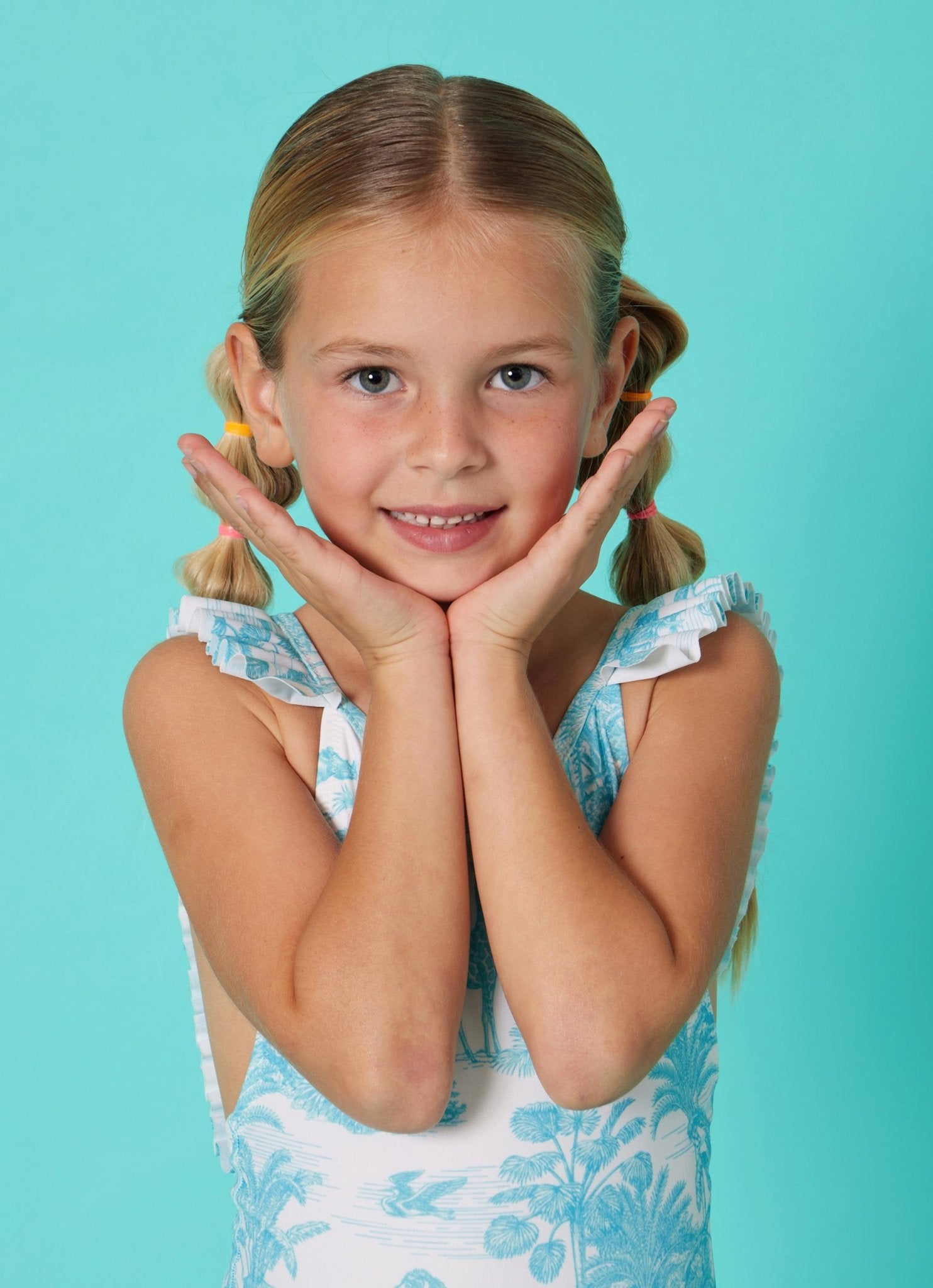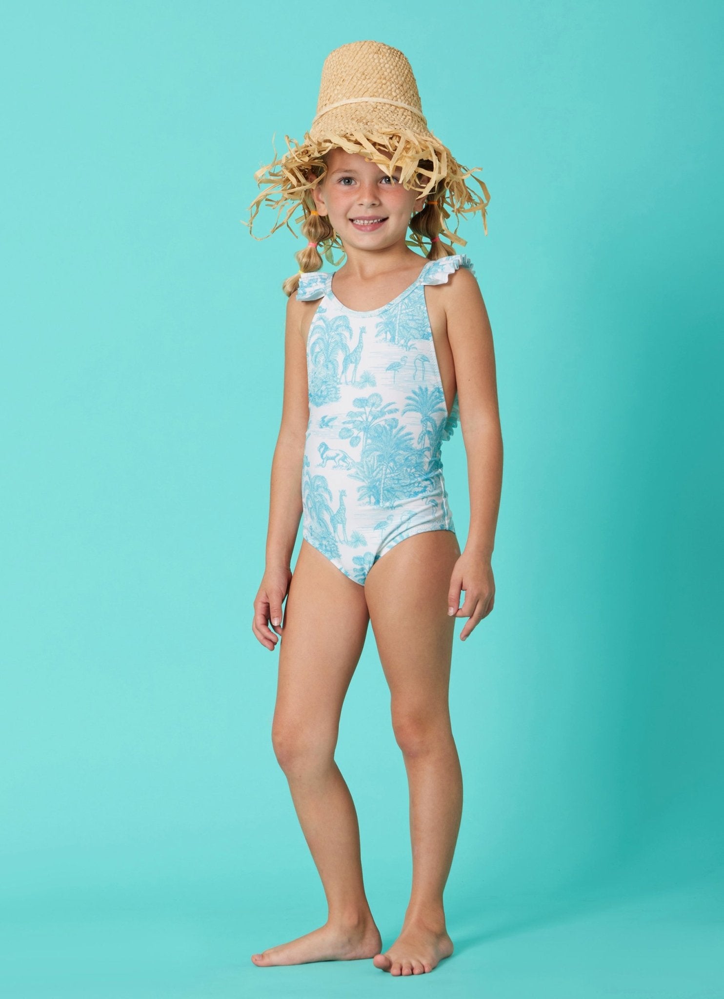 Marie Raxevsky Jungle Turquoise Girls Pleated Swimwear