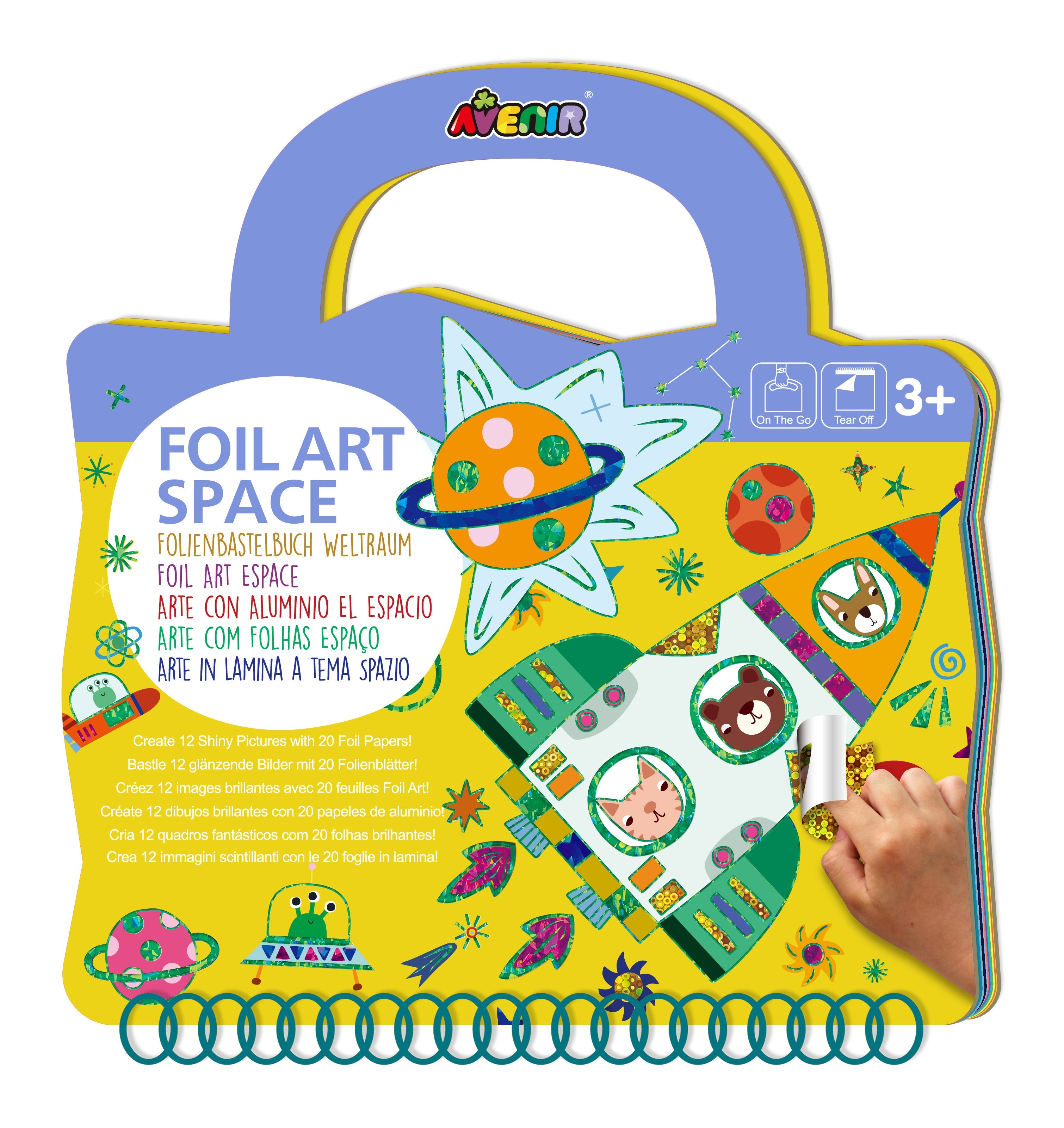 Avenir - Foil Art - Space Multicolour | Easy, mess-free and fun! Convenient carry handle and beautiful illustrations | Peel off the stickers | Convenient carry handle | Ages 3+