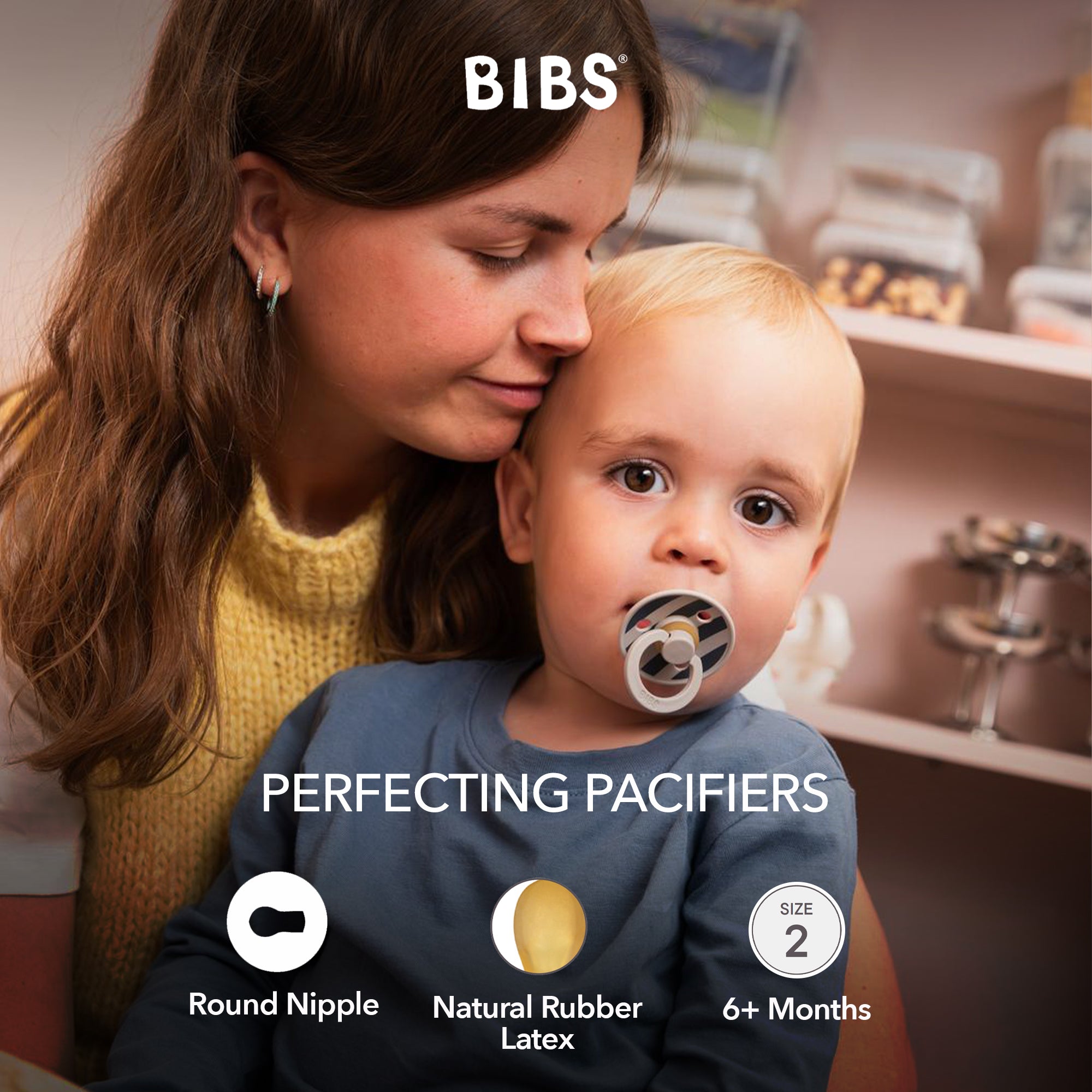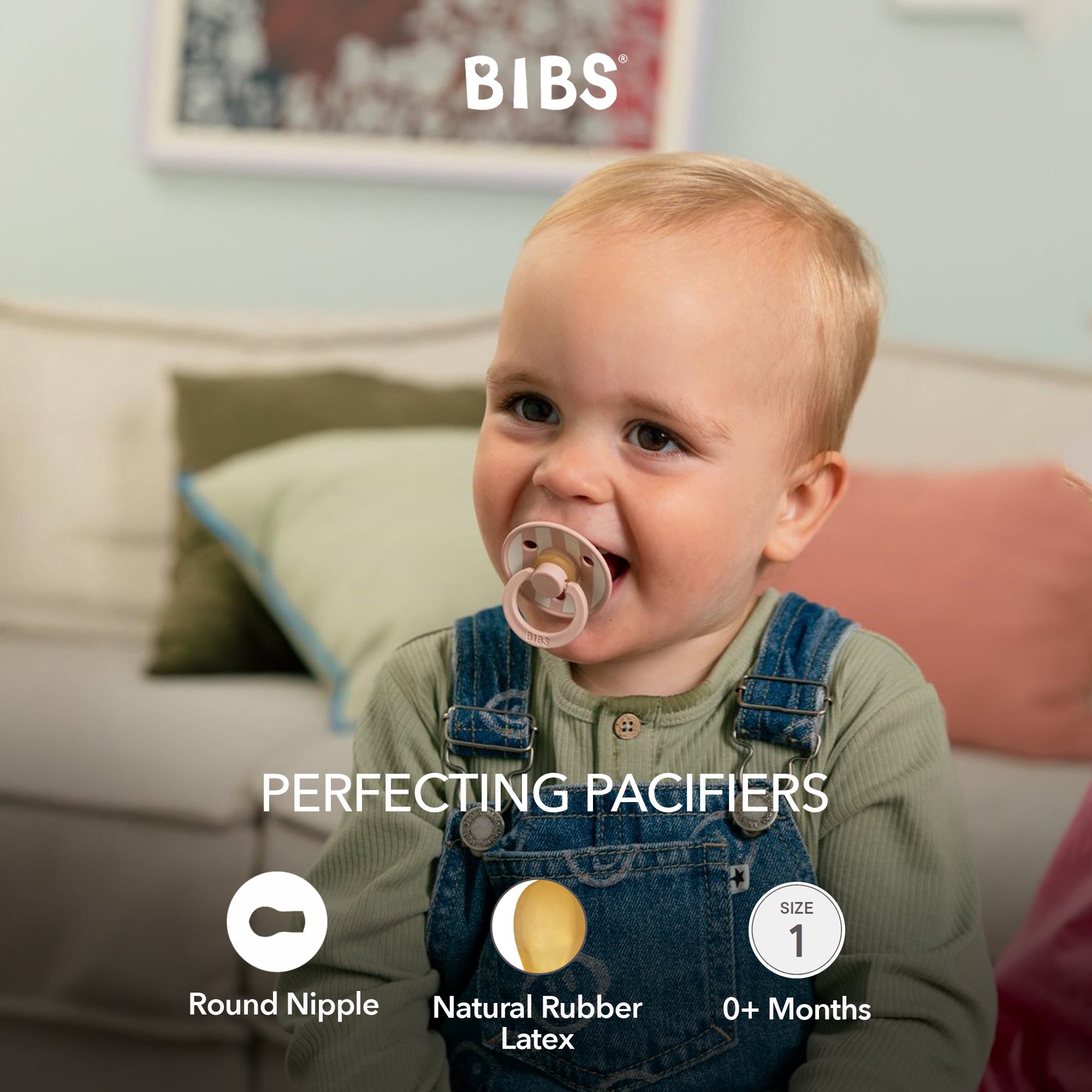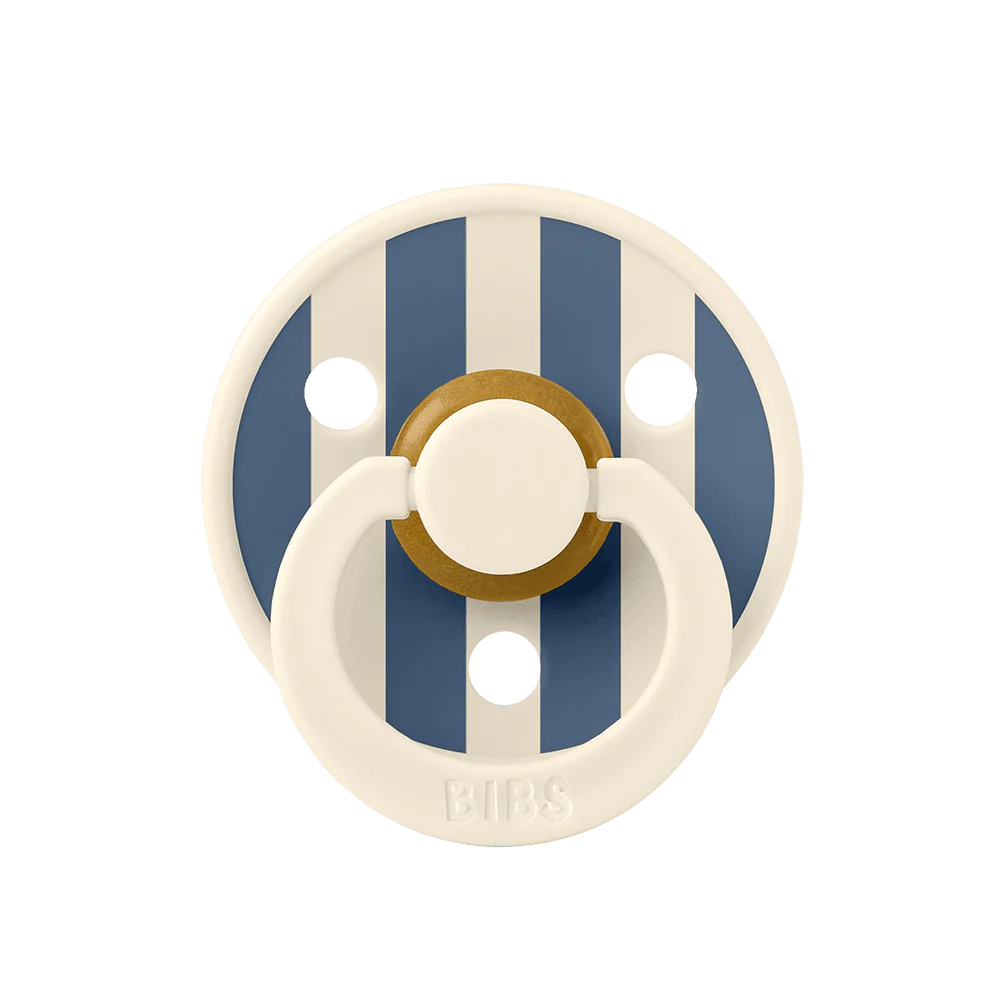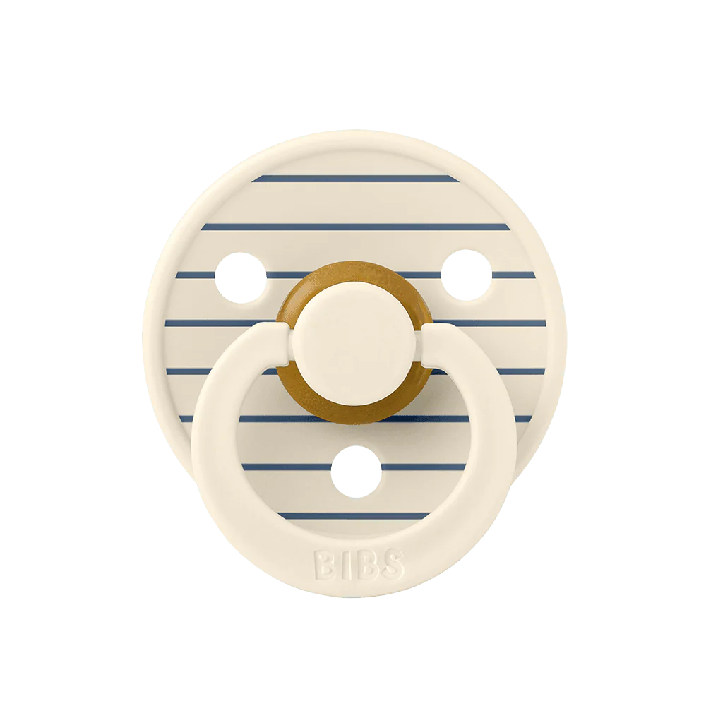Soothe naturally! The BIBS Round Pacifier Studio Colour 2 Pack features soft natural latex cherry-shaped nipples that mimic breastfeeding. BIBS designed these lightweight pacifiers with a shield for vital airflow. This BIBS set provides comfort for newborns and infants. A thoughtful gift for new parents.