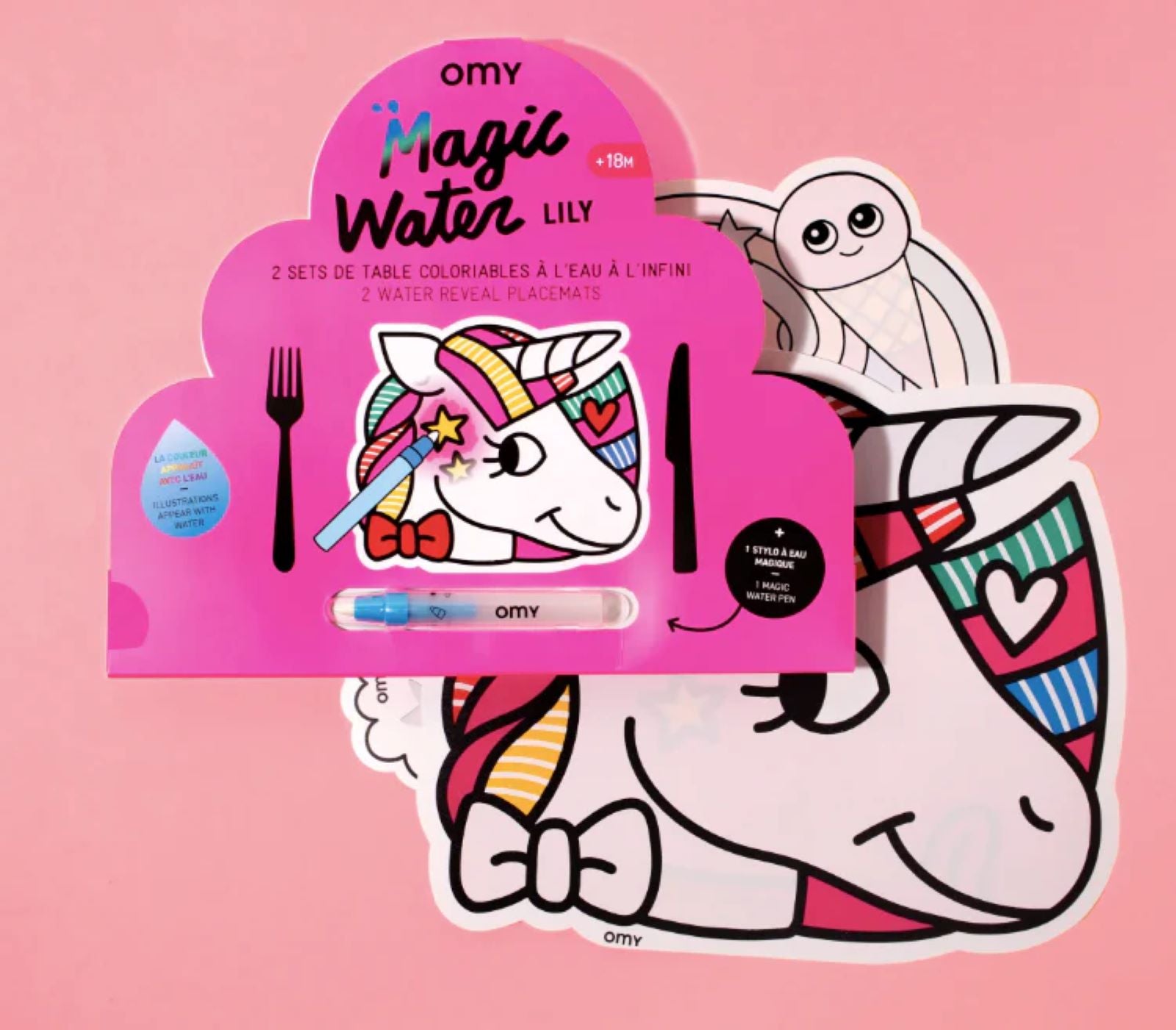 Discover the Omy-Water coloring placemats by Omy. Transform mealtime into a creative adventure with our Reusable Magic Water Placemats. Kids can enjoy mess-free coloring using a magic water pen, revealing vibrant illustrations that disappear when dry. Perfect for home, travel, or dining out, these placemats offer endless fun and creativity while protecting surfaces and encouraging artistic expression.