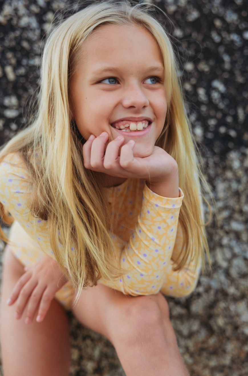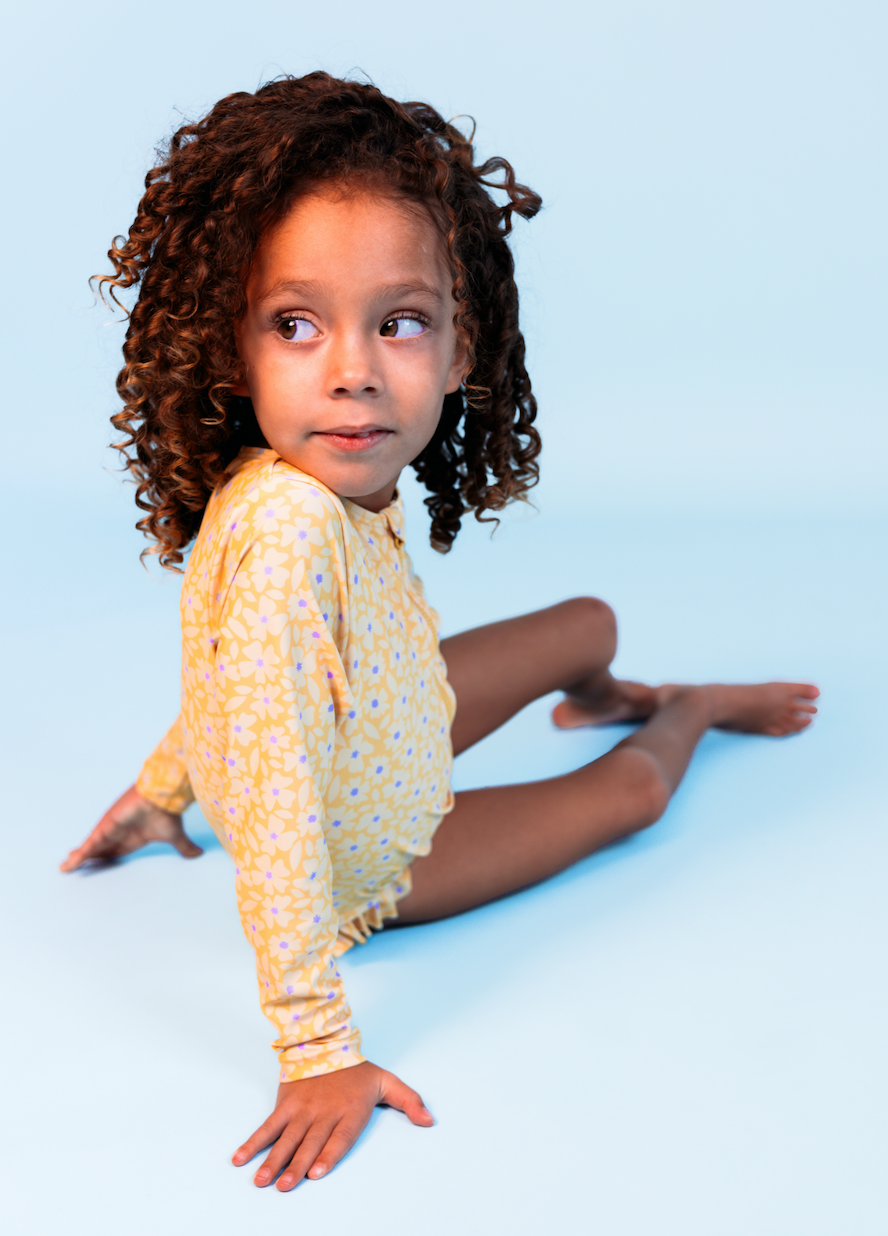 Swim Essentials Florish Yellow Girls Long Sleeve Swimsuit | Kids Swim